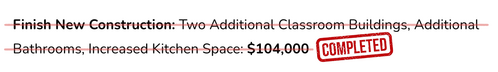 Four Classroom Buildings with 600 student capacity (2 Buildings completed with 240 students supported)